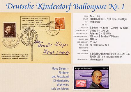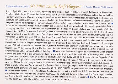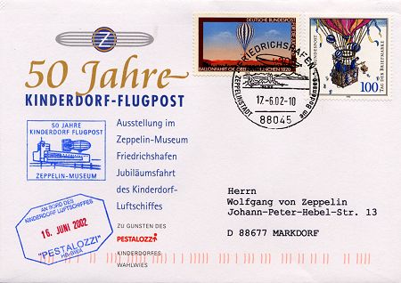 Fahrt anlässlich 50 Jahre Kinderdorf-Flugpost mit Heißluft-Luftschiff "PESTALOZZI" am 16.06.02,