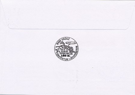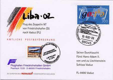Flug anlässlich LIBA 02 (Amtliche Postbeförderung des Zeppelin NT "FRIEDRICHSHAFEN") am 10.08.02, Friedrichshafen D - Vaduz FL