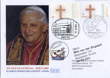 Vatikan-Zuleitungspost Zeppelin NT D-LZZF zum XX. Weltjugendtag/Besuch von Papst Benedikt XVI. in Köln am 16.8.05,