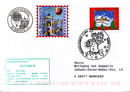 Weihnachts-Ballonpost aus Christkindl, Österreich am 27.11.2005