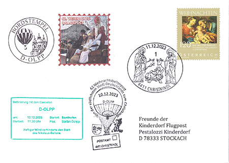 Weihnachts-Ballonpost aus Christkindl, Österreich am 10.12.2023